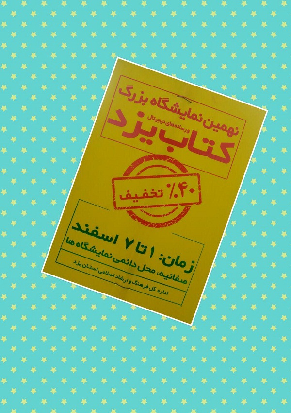 نهمین نمایشگاه بزرگ کتاب یزد، از تاریخ 1 الی 7 اسفند ماه سال جاری در محل دائمی نمایشگاهها ؛ برگزار می گردد.